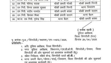Singrauli News – सिंगरौली पुलिस अधीक्षक मनीष खत्री ने कई चौकी प्रभारियों का किया फेरबदल