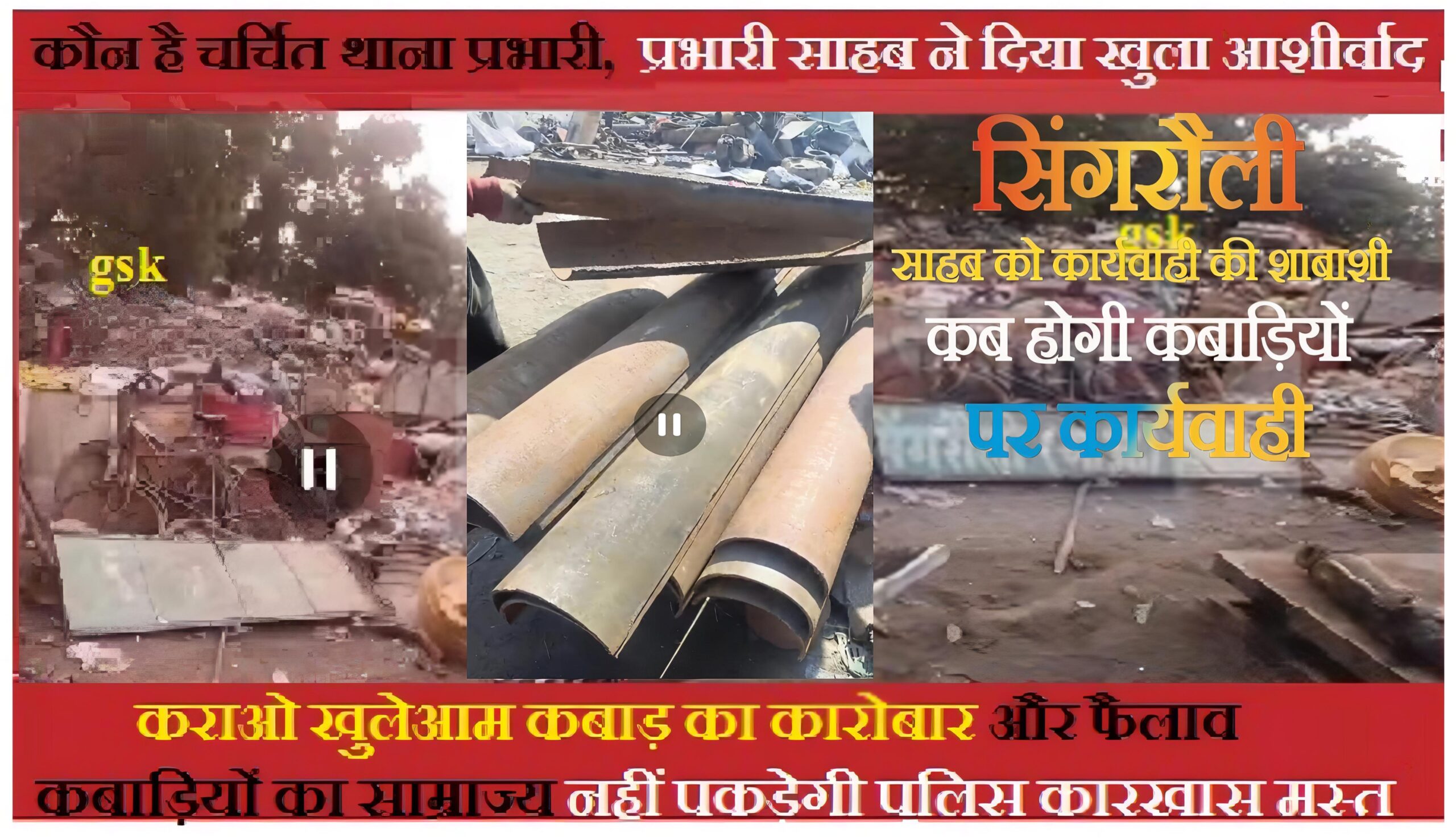 SINGRAULI NEWS: साहब को कार्यवाही की शाबाशी, कब होगी नवानगर थाना क्षेत्र में खुलेआम चल रही अवैध कबाड़ की दुकानों ने क्षेत्र में फैलाया कबाड़ियों का साम्राज्य प्रभारी अंजान