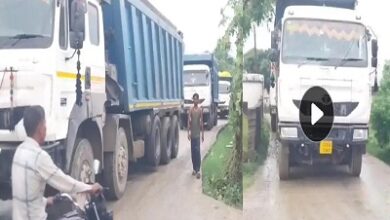 Singrauli News एनटीपीसी फ्लाई ऐश ढोते ट्रकों से जूझ रहे लोग, बलियरी निवासी बोले– वैकल्पिक मार्ग बने