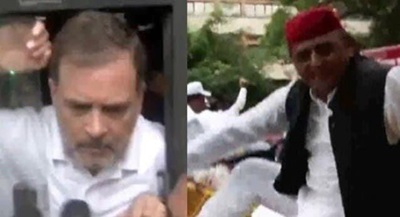 EC मार्च में गरजे विपक्षी नेता: अखिलेश ने फांदी बैरिकेडिंग, राहुल गांधी ने पुलिस बस से दी हुंकार