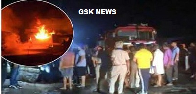 एलपीजी से भरे टैंकर में धमाकाः गांव में बिखरी आग 15 दुकाने, 4 घर जले, 2 की मौत 30 घायल
