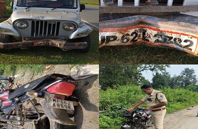 road accident news: मार्सल ने बाइक को मारी जोरदार टक्कर, नाना-नाती की दर्दनाक मौत