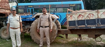 मुखबिर से प्राप्त सूचना के आधार पर थाना जियावन क्षेत्र में अवैध रूप से रेत का परिवहन करते हुए दो ट्रैक्टरों को रंगे हाथ पकड़ा