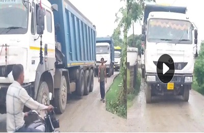 Singrauli News एनटीपीसी फ्लाई ऐश ढोते ट्रकों से जूझ रहे लोग, बलियरी निवासी बोले– वैकल्पिक मार्ग बने