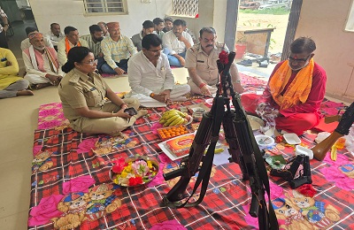 पूरे थाना परिसर में इस दौरान धार्मिक और श्रद्धामय वातावरण बना रहा। हवन, पूजा और आरती के उपरांत प्रसाद वितरण कर शस्त्र पूजन कार्यक्रम का समापन किया गया।