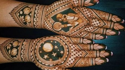 इसलिए अगर आप थीम-बेस्ड मेहंदी चाहती हैं, तो इसमें चांद, सितारे और छलनी के डिज़ाइन शामिल कर सकती हैं।