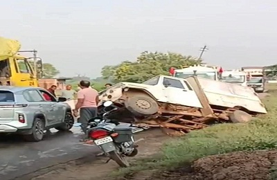 Road accident खड़े ट्रकों में जा घुसी पिकअप, तेज़ रफ़्तार और लापरवाही बनी हादसे की वजह