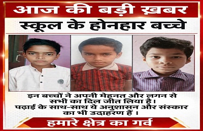 कोचिंग के कक्षा 5वीं के मेधावी छात्र दिव्यराज सिंह, मयंक सिंह, विकास सिंह एवं सृष्टि सिंह ने